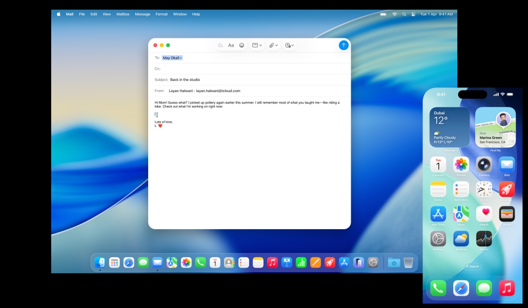 Mac, iPhone, iPad, and Apple Watch are amazing on their own. And they’re even more amazing when used together. Thanks to Continuity, your devices work together seamlessly — unlocking a world of powerful features. Start an email on your Mac and finish it on your iPad. Snap a photo on your iPhone and see it appear on your Mac. Or make a call without reaching for your iPhone.1 That’s the magic of Continuity.