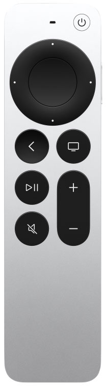 A touch-enabled clickpad. Easily swipe through episodes, scenes, or frames with an intuitive circular movement. Turn your TV on or off, change the input to Apple TV 4K, and control the volume.