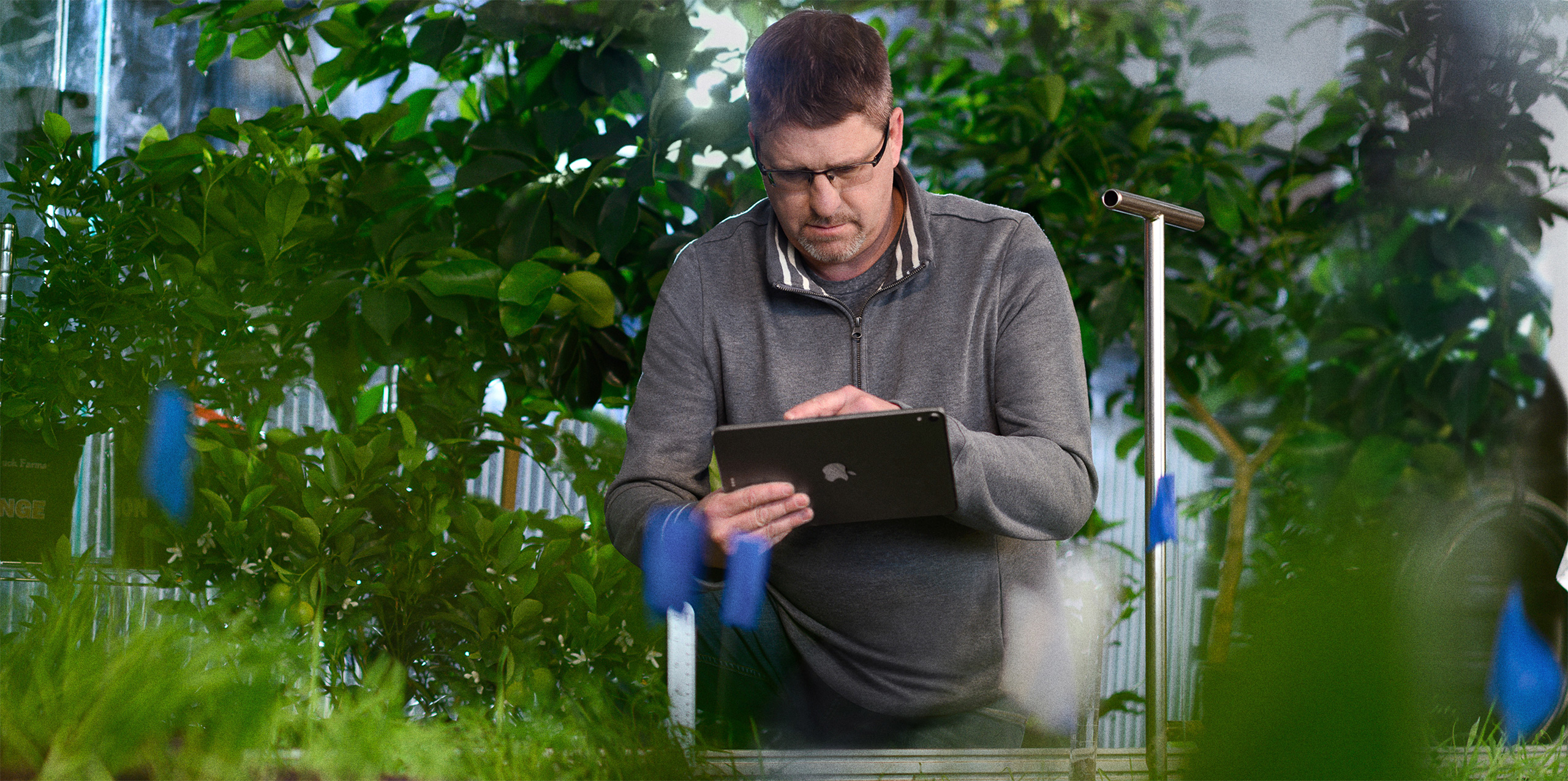 iPad Pro. Bergsma gebruikt apps op iPad Pro zoals Climate FieldView voor het verzamelen, controleren en meten van alle gegevens voor zijn landbouwonderzoek. Denk hierbij aan gegevens over irrigatie en voeding in de tijd tussen het zaaien en oogsten van de gewassen.