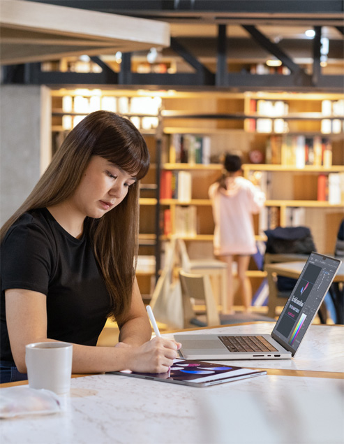 “O iPad Pro e o Apple Pencil se tornaram indispensáveis para mim. Eu uso na vida profissional como estudante de artes e também como membro da geração Z, passando momentos tranquilos em lugares que eu curto.”