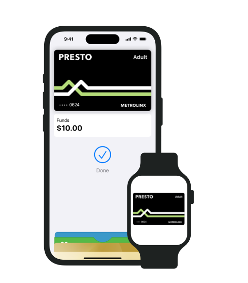 Add funds to your PRESTO card in seconds directly in the Wallet app — no need to stop at the ticket machine.