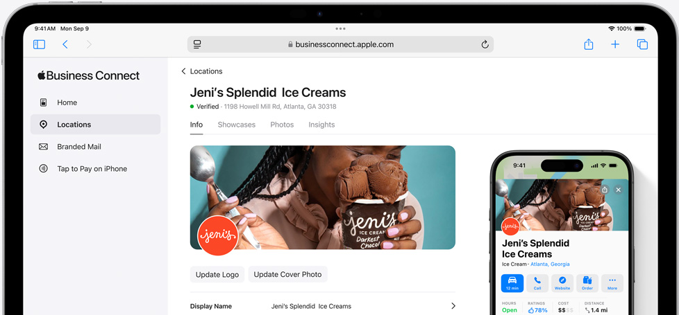 Apple Business Connect is a free platform that lets you control how you show up across Apple Maps, Wallet, Siri and more. Establish your business with a fully personalized place card, build trust with branded communications, engage customers with promos and customizable actions, and grow your business using data‑driven insights.