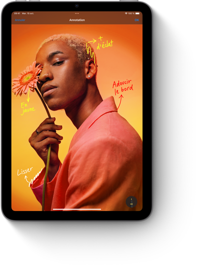Avec iPad mini, vos documents numérisés se refont une beauté. La caméra détecte les documents grâce à l’IA. Et avec le flash True Tone, si une zone est plus sombre, la caméra capte plusieurs images et les fusionne pour créer un fichier haute qualité, sans ombres ni reflets.