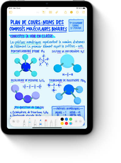 iPadOS fait d’iPad mini un outil encore plus polyvalent. Personnalisez votre écran d’accueil, soignez votre écriture manuscrite avec Smart Script et utilisez l’Apple Pencil pour évaluer des expressions et créer des graphiques dans Notes mathématiques.