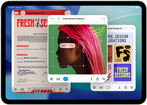 Arrange windows with a flick to the left or the right. And now you can also split your iPad screen into thirds or quarters.