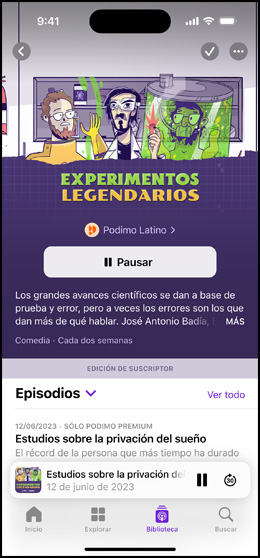 • Suscripciones de Apple Podcasts es una plataforma global donde encontrarás las suscripciones premium que ofrecen tus creadores favoritos. Como parte de tu suscripción premium, obtendrás acceso a una gran variedad de beneficios seleccionados por los creadores, como acceso a contenido adicional, reproducción sin anuncios y acceso anticipado o exclusivo a nuevas series.