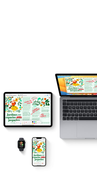 Empieza una tarea en un dispositivo y termínala en otro. Incluso puedes usarlos al mismo tiempo con Cámara de Continuidad, Control Universal y más.