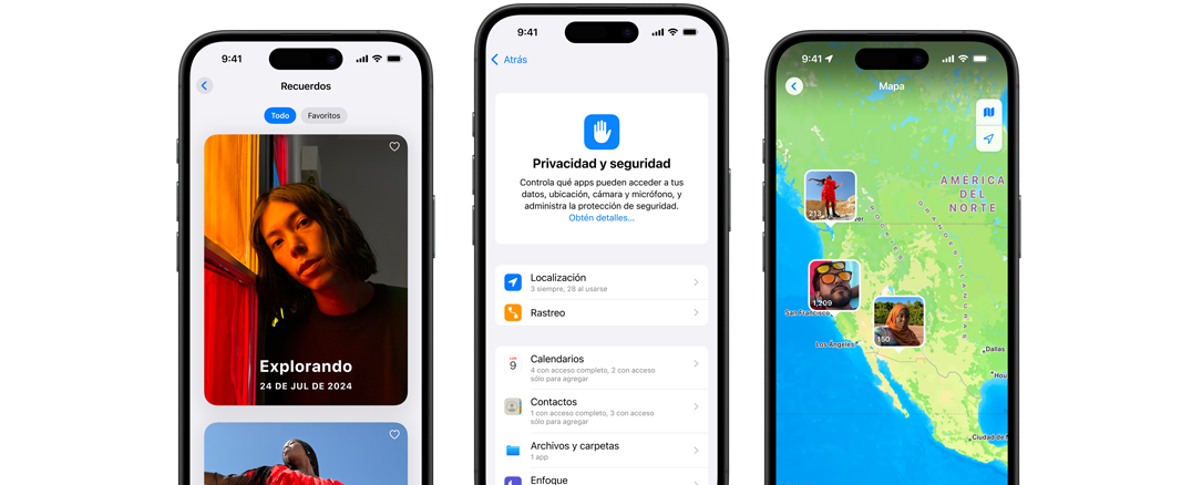 Los dispositivos que hay en tu familia guardan mucha información personal. Por eso diseñamos nuestro hardware y software para proteger la privacidad de tu información. Touch ID y Face ID, por ejemplo, son dos de las tecnologías de seguridad más avanzadas en dispositivos personales. Además, hicimos que fuera más fácil para los padres configurar controles de privacidad en los dispositivos de sus hijos.