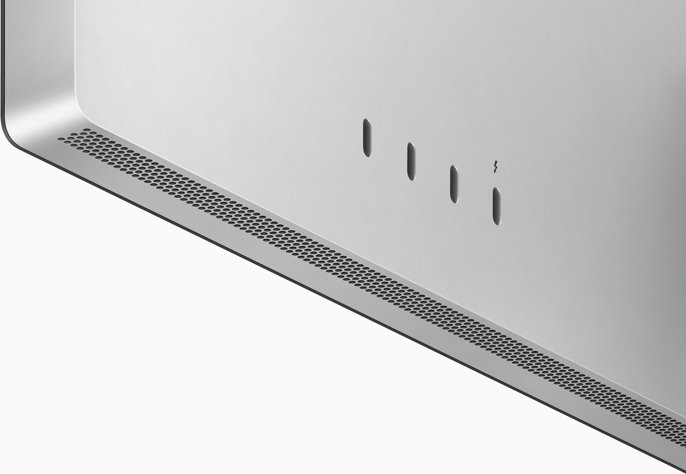 Tres puertos USB-C te permiten conectar y cargar dispositivos, desde accesorios para redes y discos externos hasta un teclado, mouse o iPhone. El puerto Thunderbolt conecta el monitor Studio Display a tu Mac con un solo cable. Con este mismo puerto puedes cargar notebooks Mac compatibles e incluso cargar rápidamente un MacBook Pro de 14 pulgadas.