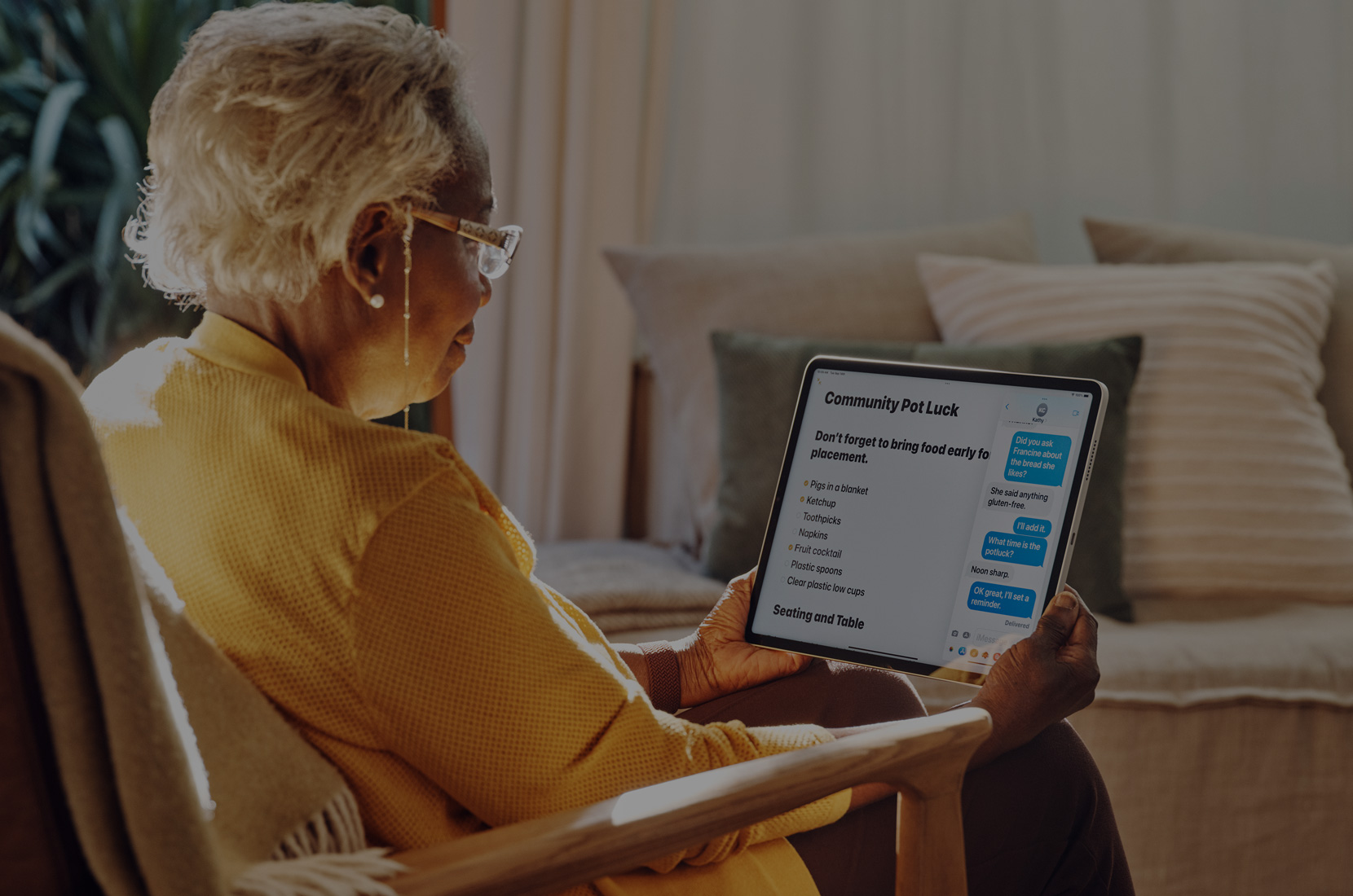 Asistivní přístup umožňuje přizpůsobit si prostředí v aplikacích Telefon a FaceTime (sloučených do jedné aplikace Hovory), Zprávy, Fotoaparát, Fotky, Hudba nebo Lupa a v aplikaci Apple TV na iPhonu a iPadu. Ten, kdo dává přednost vizuální komunikaci, může ve Zprávách používat klávesnici, na které jsou jenom emotikony a možnost nahrávat videozprávy. Vyber si pro plochu a aplikace vizuálnější prostředí uspořádané do mřížky, nebo řádkové rozvržení, pokud ti víc vyhovuje text. Asistivní přístup taky podporuje aplikace třetích stran včetně aplikací pro augmentativní a alternativní komunikaci (AAK).