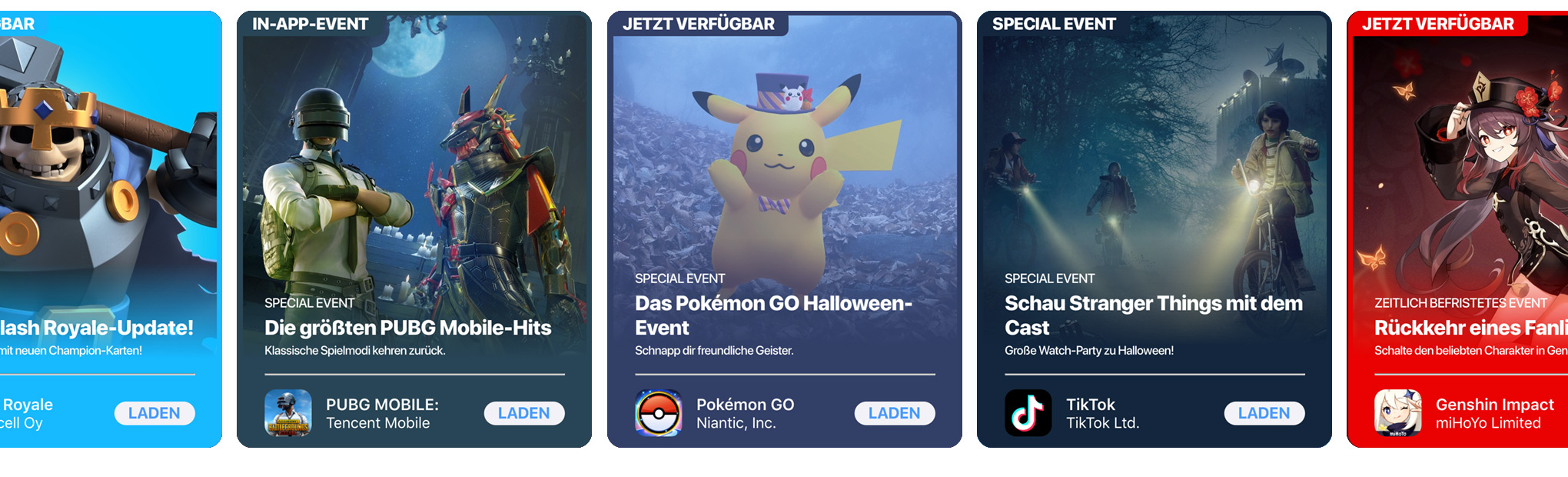 Der App Store ist seit über zehn Jahren ein sicherer und vertrauens­würdiger Ort, um Apps zu ent­decken und herunter­zuladen. Aber der App Store ist mehr als nur ein Store – er ist ein innovativer Ort, der dir fan­tas­tische Erleb­nisse nach Hause bringt. Ein wich­tiger Teil dabei ist es, sicher­zustellen, dass die von uns angebotenen Apps den höchsten Stan­dards für Daten­schutz, Sicher­heit und Content entsprechen. Alles ist so ent­wi­ckelt, damit du deine nächste Lieblings­app ganz entspannt finden kannst.