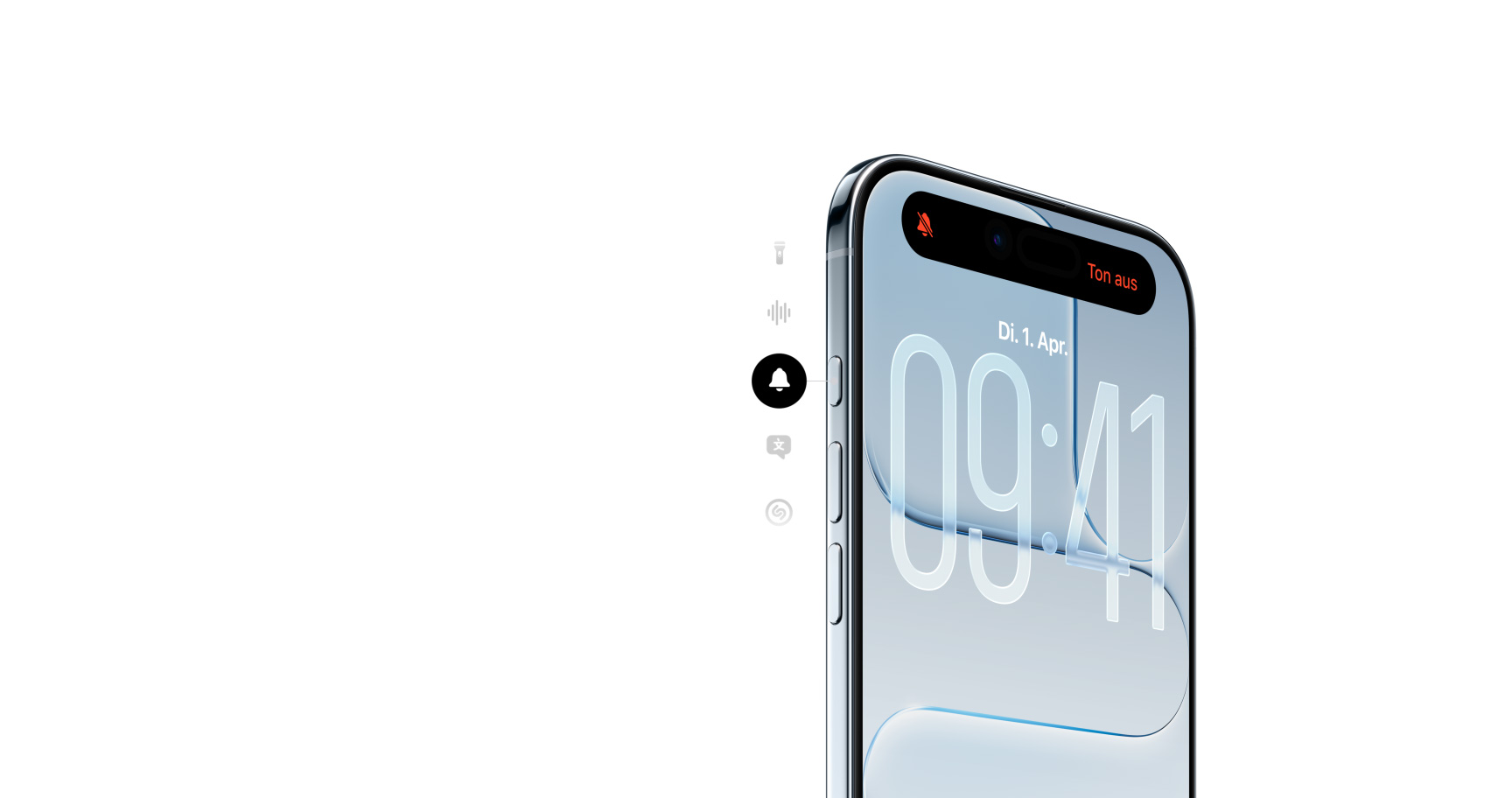 Actiontaste. Die Abkürzung zu deinem Lieblingsfeature. Halte sie gedrückt, um die gewünschte Funktion zu starten – wie Stummmodus, Übersetzen, Kurzbefehle und mehr.