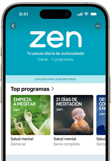 Si te suscribes a tus programas o canales favoritos disfrutarás de episodios exclusivos, reproducción sin publicidad y otras ventajas.1 También puedes asociar tus suscripciones de Apple Music y apps populares del App Store para acceder a todo tu contenido prémium de audio desde un mismo lugar.