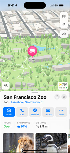L’app Plans offre bien plus que des itinéraires simples et fiables. C’est le guide idéal pour explorer le monde qui vous entoure. Interagissez avec des sites touristiques à l’autre bout du monde… ou de la rue.