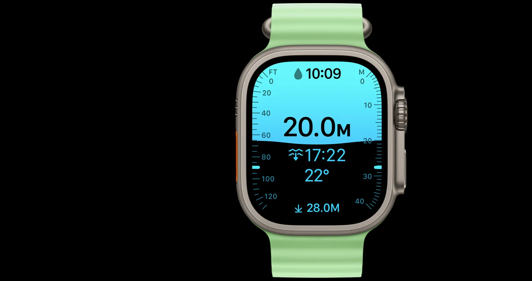 我們與 Huish Outdoors 合作設計,有 Oceanic+ app 加持,運用 Bühlmann 減壓演算法,讓 Ultra 3 變身全能潛水電腦13。捲動數碼錶冠,實用數據一目了然。這款 app 還會持續計算並監測各項潛水參數,為你提供所需的各項安全警示。
