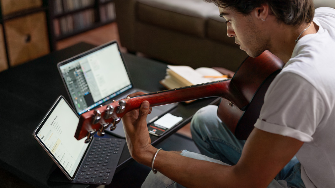 Seperti mahasiswa lainnya, Max harus beradaptasi dengan pembelajaran jarak jauh. Dalam hal ini, MacBook Pro menjadi penyelamatnya. Dengan perangkat lunak produksi profesional seperti Logic Pro, MacBook Pro menjadi pelengkap yang sempurna dan memberikan semua yang ia butuhkan untuk mengubah kamarnya menjadi studio rekaman.