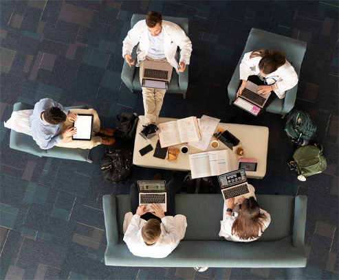同校のイノベーションラボは魔法のような場所であり、Appleのテクノロジーを駆使したアプリ開発や創造のための最先端のインキュベーションスペースです。この明るくモダンなスペースには、バックグラウンドも関心事も様々なあらゆる学生が集まってきます。学生たちはここでチームを組み、協力し合いながら、実社会の問題解決に取り組んでいます。