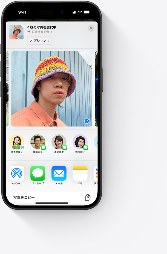 Appleインビテーションは、大切なひとときのためにユニークな招待状を作れる新しい方法です。自分で背景を選ぶか、Apple Intelligenceで画像を生成してデザインできます5。Apple Music、写真、マップなどを使ってイベントを演出したり、みんなに招待状を送信したあとは出欠をチェックすることもできます。イベントの準備に必要なものがすべて用意されているAppleインビテーションは、iCloud+のサブスクリプションに含まれています。