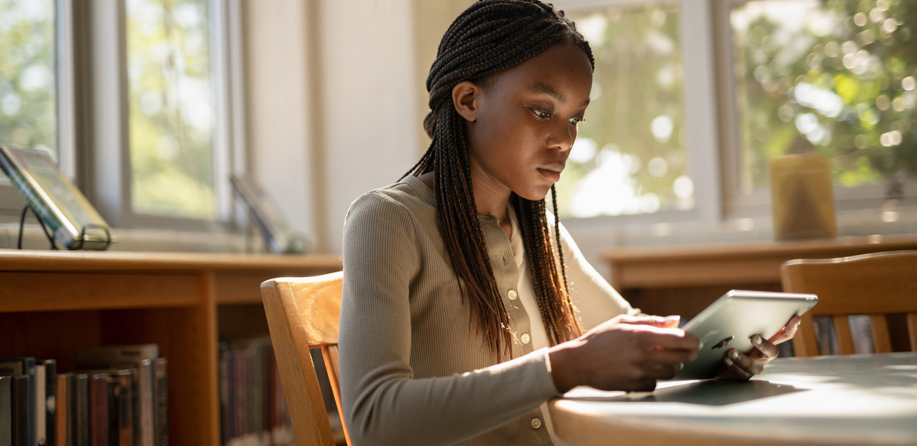 iPad와 함께라면 언제 어디서나 학습이 가능합니다. 가벼운 디자인과 최대 10시간의 배터리 사용 시간 덕분에 온종일 쉽고 스마트하게 소통할 수 있죠.