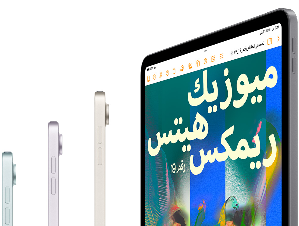 اختر ما يناسبك من بين iPad Air‏ مقاس 11 إنش ومقاس 13 إنش، يتألق كلاهما بشاشة ريتنا ليكويد خلابة فائقة الوضوح تحول كل ما في بالك إلى واقع ملموس أمامك. وتمنحك تجربة مشاهدة مذهلة بروعتها ومدهشة بسرعة استجابتها ورائعة بدقة ألوانها.