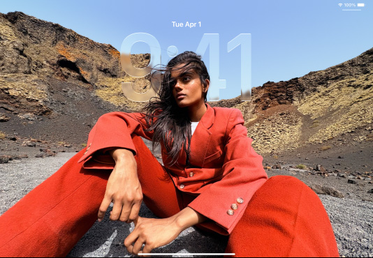 L’affichage de l’heure s’adapte automatiquement aux notifications et à la photo de fond d’écran, sans masquer le sujet à l’écran. Lorsque vous déplacez votre iPad, votre photo s’anime avec un nouvel effet 3D3.