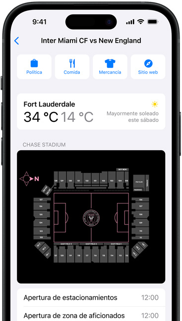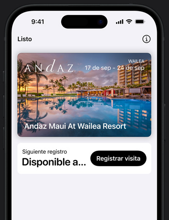 • Usar diferentes tipos de tarjetas y pases en Apple Wallet es muy sencillo. Algunos pases pueden aparecer automáticamente según la hora y ubicación, como un pase de abordar cuando llegas al aeropuerto.