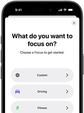 No-one should be distracted by the phone while driving. With the Driving Focus, iPhone won’t interrupt you with messages, calls or notifications until you reach your destination. In an emergency, callers can override it and get through.