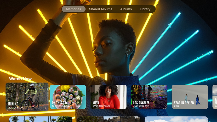 Photos. iCloud Shared Photo Library makes it easier than ever for the whole family to enjoy each other’s photos, and you can see them all right on your TV. And you can choose Memories as your screen saver and watch your special moments come alive on the big screen.