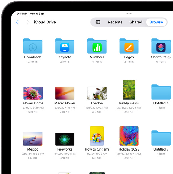 iCloud Drive makes the files and folders you save easy to get to and share, no matter which device you’re using. Access them all from the Files app on iOS and iPadOS, the Finder on your Mac, File Explorer for Windows PCs or iCloud.com.