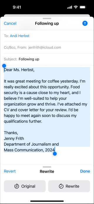 Apple Intelligence protects your privacy at every step. With on-device processing and Private Cloud Compute, no one but you can access your data — not even Apple.
