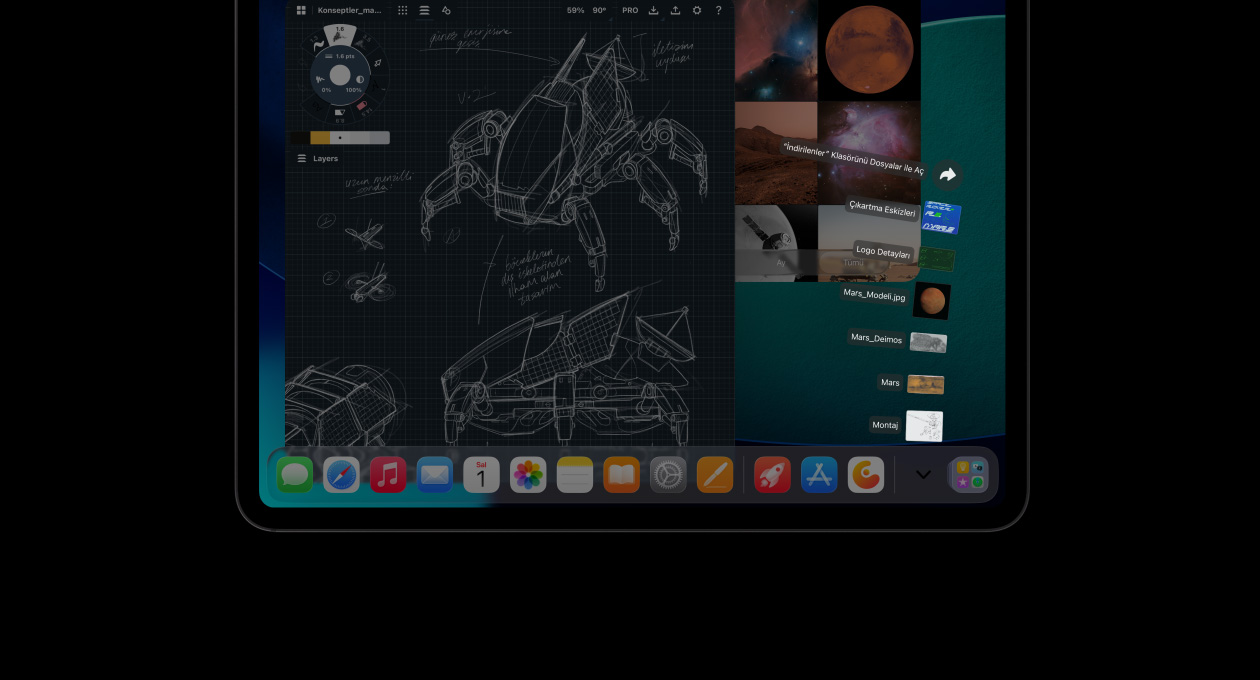 iPadOS 26 ile sunulan büyüleyici yeni Liquid Glass tasarım ve benzersiz iyileştirmeler iPad Pro’da üretkenliği yepyeni bir seviyeye çıkarıyor. Baştan tasarlanan kullanıcı dostu pencere düzeni sistemi size her zamankinden daha fazla güç ve esneklik sunuyor. Sezgisel bir dokunmatik deneyim sayesinde profesyonel uygulamaları çalıştırabiliyor, yüksek performans gerektiren oyunlar oynayabiliyor ve büyük küçük tüm yaratıcı projelerinizin altından kolayca kalkabiliyorsunuz.