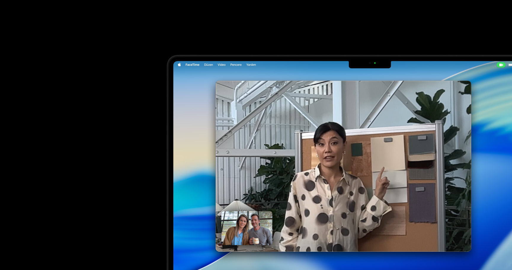 Kamera. 12MP Center Stage kamera, siz yer değiştirdikçe kadrajı ayarlayarak hep görüntüde kalmanızı sağlıyor. Masa Görüntüsü özelliği ise çalışma alanınızı paylaşmanıza imkan veriyor.