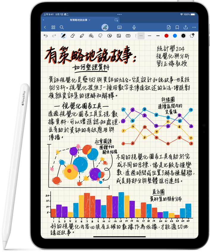 Apple Pencil 為繪圖、做筆記與標示文件的使用體驗,設下直覺易用、精準確實又