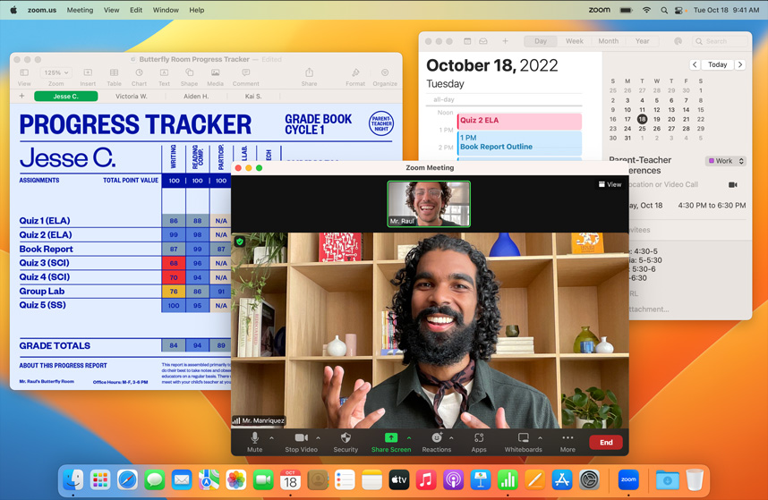 Mac 為經久耐用打造,輕巧好攜帶,隨處可用。電池續航力在最後一節課後仍有持久表現。