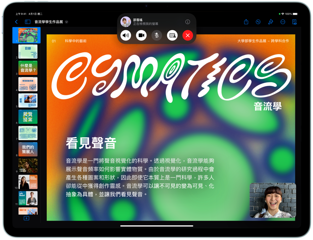 iPad Air 有 11 吋與 13 吋任你選擇,均配備絢麗的高解析度 Liquid Retina 顯示器,無論想用來做什麼,都能躍然眼前生動呈現。兩種尺寸的顯示器均明亮動人、反應靈敏且色彩精準,為你帶來出色的觀看體驗。