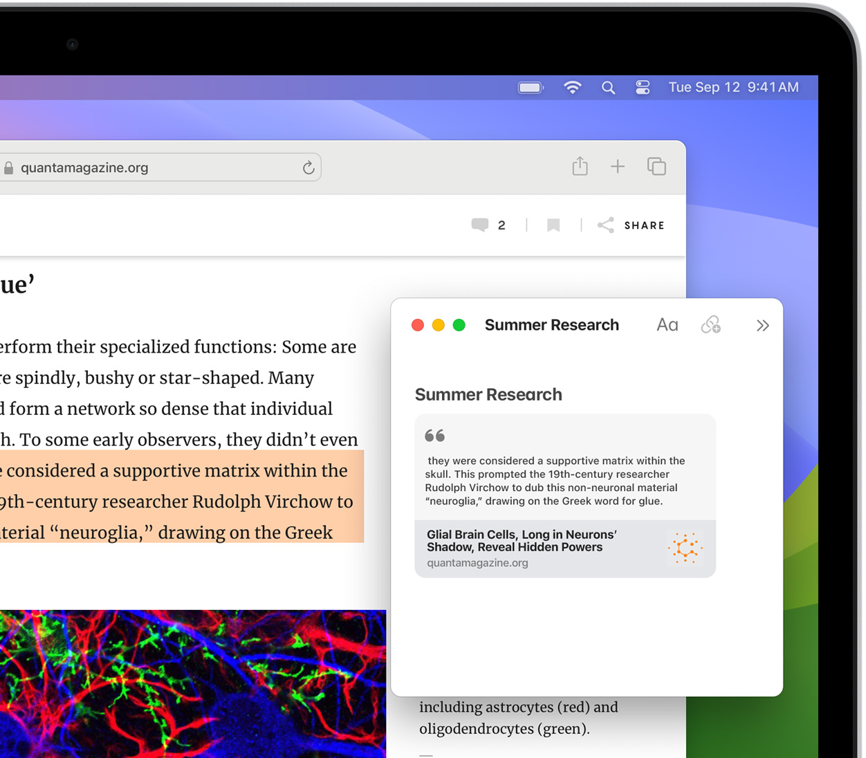 內建工具創造更易投入、直覺好用且即時回應的瀏覽體驗。選取任何圖像中的文字、即時翻譯整個網頁,以及在網站上的任何地方都能快速做筆記。一切,不必切換 app 就能完成。